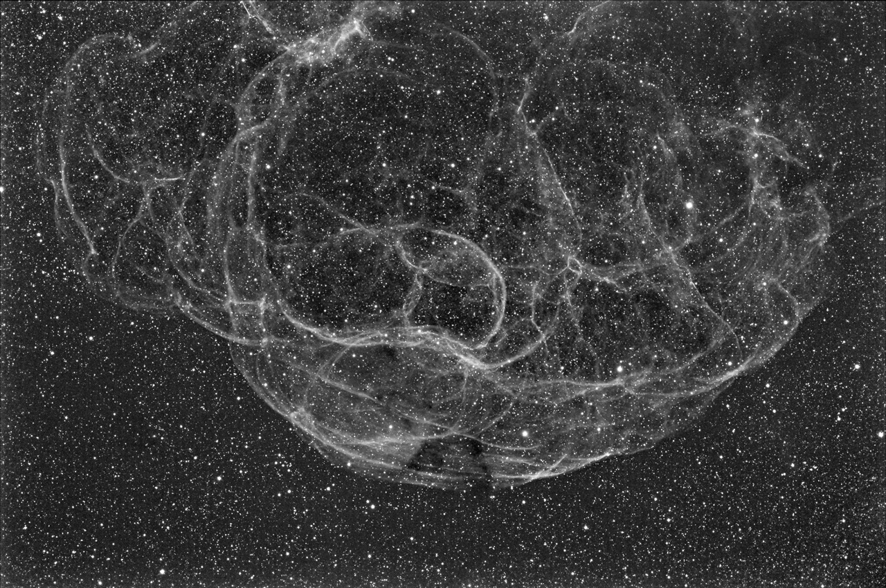 Nébuleuse Sharpless 240 - Simeis 147 FSQ106 et STL11000 Pose de 260mn avec filtre Halpha 6nm Astrodon Retour