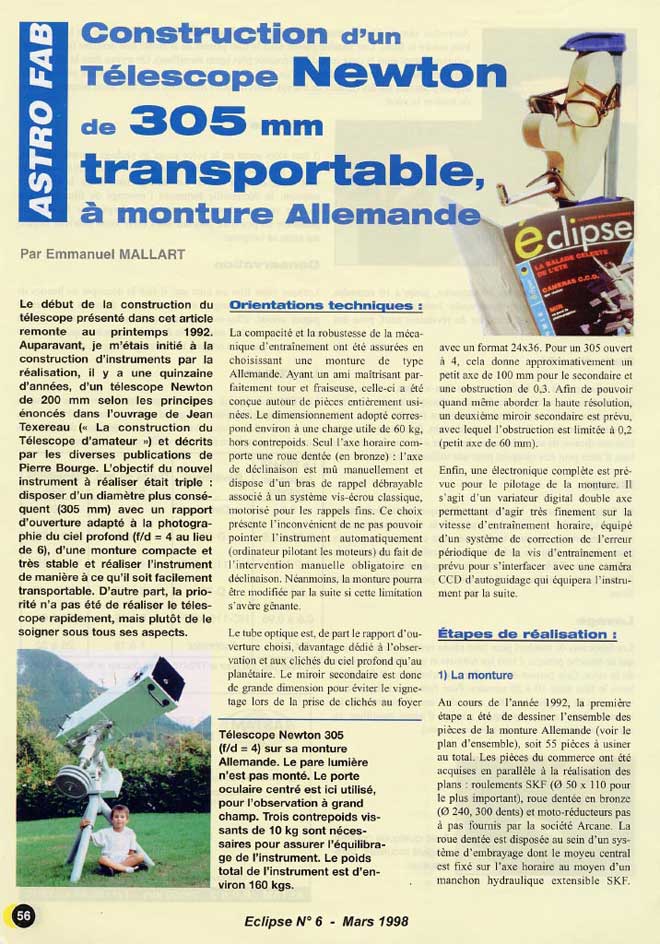 => Optique diamètre 300, f:4 polie par Robert Lartigau (excellente