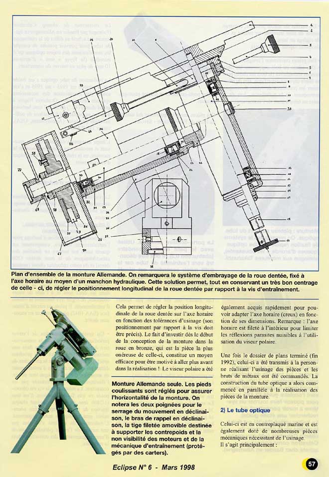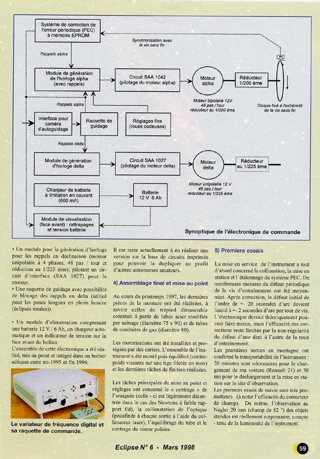 (intégrant un diviseur optique pour le suivi), deux platines porte-oculaires (avec chacune leur propre porte-oculaires à